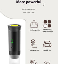 Enjoy fresh, barista-quality coffee anywhere with this 3-in-1 Portable Coffee Machine. Designed for travel and convenience, it features an electric grinder, espresso maker, and capsule compatibility—all in one compact device. Whether you're at home, in the office, or on the go, this handy gadget ensures a perfect cup of coffee anytime.