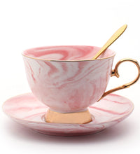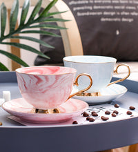 Color: gray coffee cup and saucer, pink coffee cup and saucer, blue coffee cup and saucer